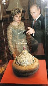 Владимир Путин - директору музеев Кремля Елене Гагариной: - А размерчик у шапки Мономаха какой?